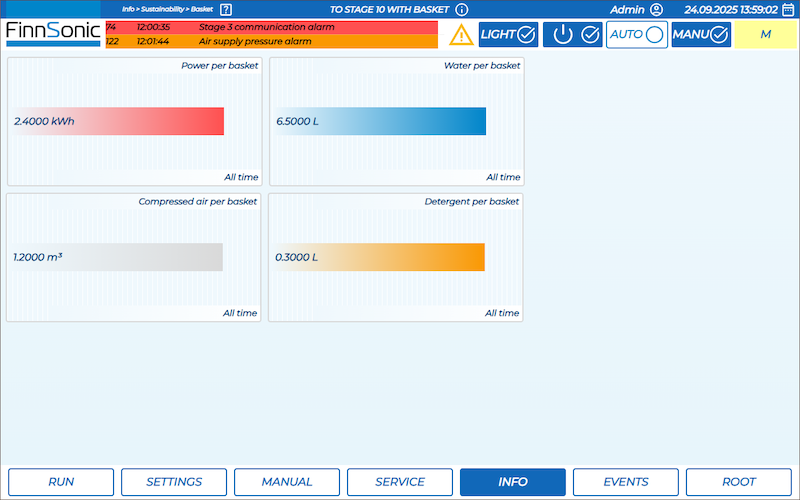 - Sustainability Goals: Achieve sustainability goals by monitoring energy, pure water, compressed air, and chemical usage, reducing waste and improving resource efficiency.
