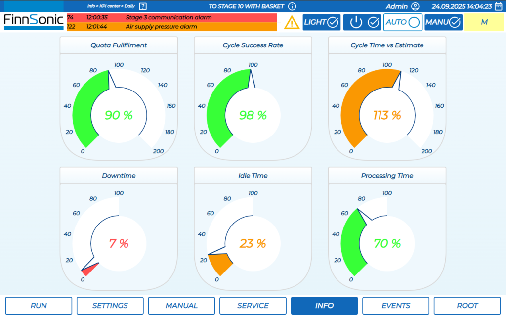 The FinnSonic Smart Assistant is an optional add-on that supports personnel in the operation and maintenance of the equipment. This data collection system is designed to enhance efficiency, sustainability, and maintenance in manufacturing operations. Key features include customisable service tasks, remote monitoring capabilities, and a KPI Centre that provides detailed usage and performance metrics.