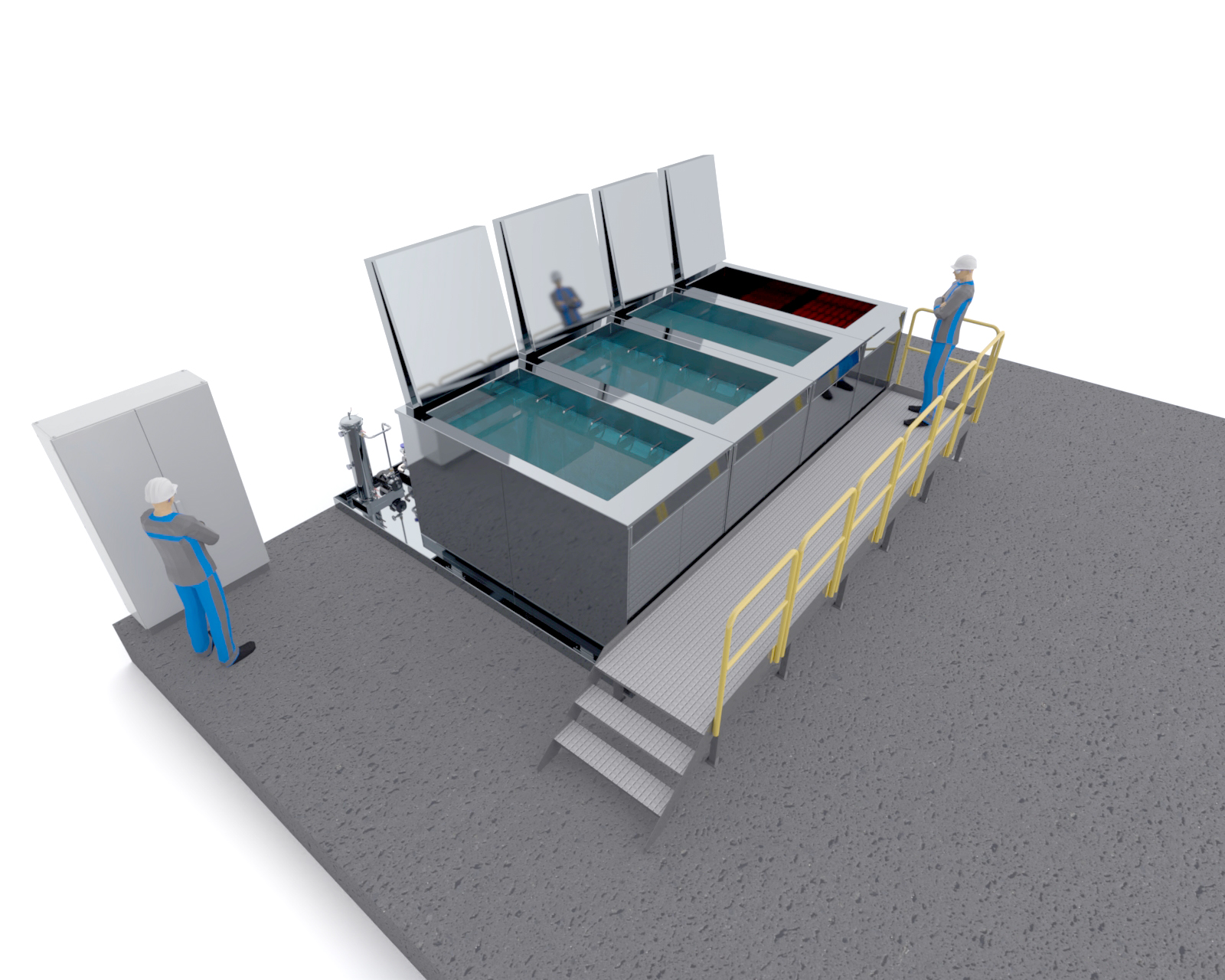 Precision cleaning solutions for manufacturing industries. The line can be constructed from a single manually operated unit to a fully automatic multi-stage line. All lines are based on robust treatment tank modules.